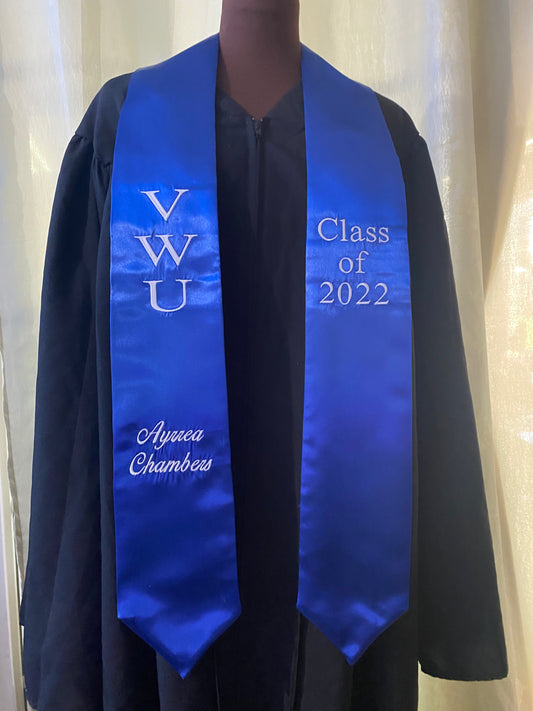Traditional Pointed Graduation Stole Left side: School Initial & your name Right side: Class of 2024
