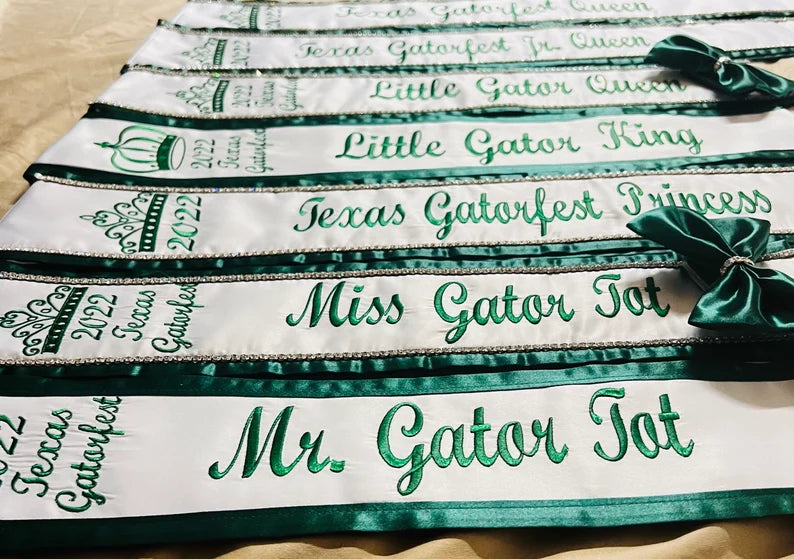 Use text area for personalization Color option Sash color/ Thread color/ Trim Color Shoulder: Crown & Year, Pageant Name Title: Max 24 letters
