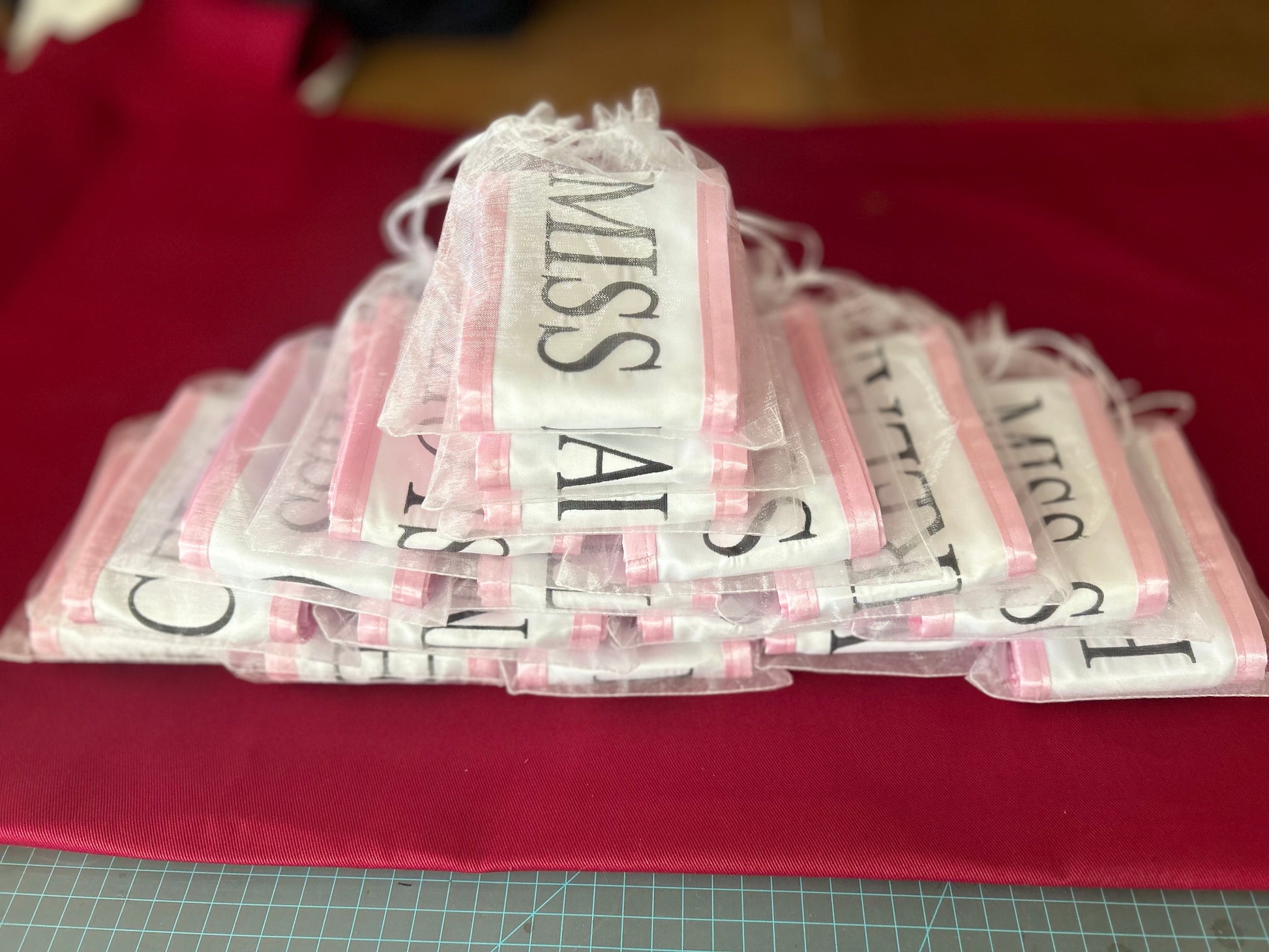 Use text area for personalization Color option Sash color/ Thread color/ Trim Color Shoulder: Crown or Year, Pageant Name Title: max 20 letters Size: youth 3-9 years